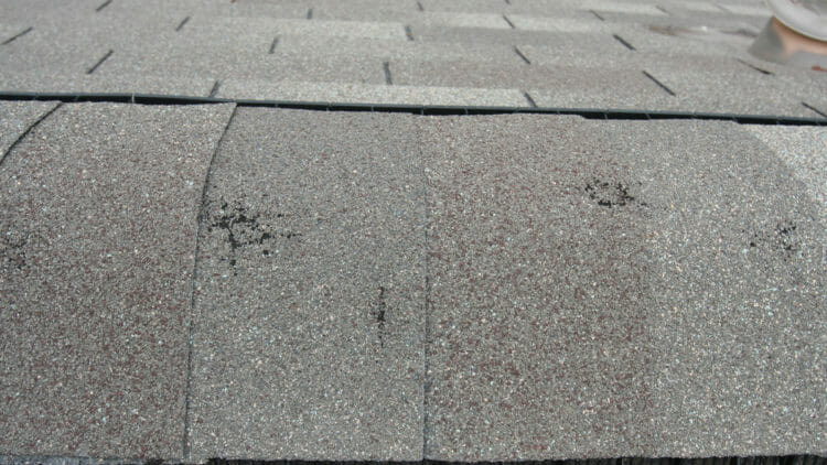 1. Loss of asphalt granules where hail hits the shingles is the most common issue. An asphalt shingle is covered with small mineral granules that allow water to flow down and away from the roof, and the granules protect the asphalt coating, which is how the roof is protected from water seepage. When hail hits the shingle, it causes an indentation that removes some of the granules. If the granules are missing, the asphalt coating becomes exposed to the elements, and this means your roof has lost some of its waterproofing.