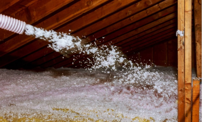 Blown-in insulation blows smaller pieces of fiberglass or cellulose insulation into your attic through a large home. A major benefit of blown-in insulation is that by blowing the small, fluffy pieces of insulation into your attic space, you will cover every inch, every area regardless of shape or size, providing a thick layer of insulation. If your home has insulation, blown-in insulation is an easy, effective way to add on top of the insulation.
